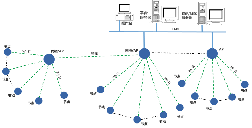 可用橋接的方式,延長Wi-Fi通信距離。構建專用的Wi-Fi網絡,用于傳輸生產運行數據。