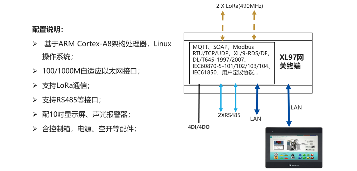 XL971E6A網關終端,是集成XL95物聯網關,10吋顯示屏、聲光報警器,及電源、開關、控制箱等等的物聯網接收終端,讓客戶安裝使用更加方便。