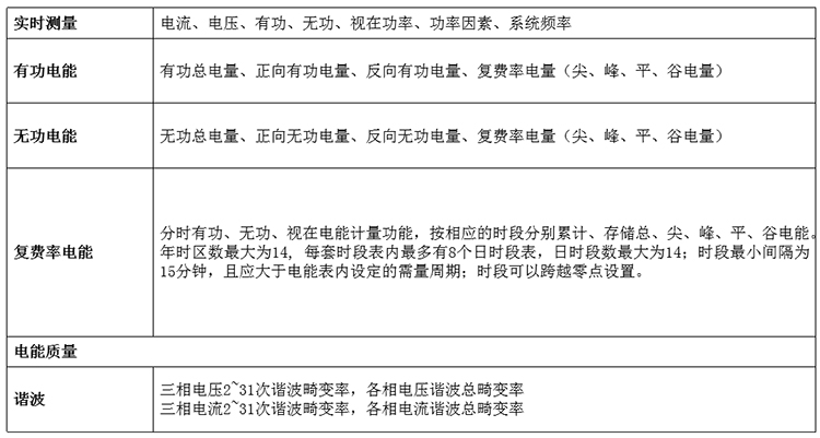 4、功能:除基本的計量功能外,建議根據設備運行方式、負載性質,以及對用數據、用電設備性能的分析需求,考慮復費率、電能質量、需量、歷史數據存儲等功能;5、獲取電能質量諧波數據,對分析電能質量,設備老化、劣變、故障等原因,提高電能質量的策略,提供準確的數據支撐;