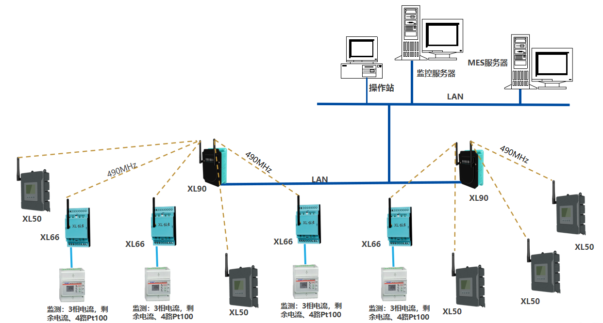 4、所有采集的數據通過無線Lora上傳給物聯網關XL90,然后網關通過以太網或者WIFI(5G)把數據傳給MES系統。