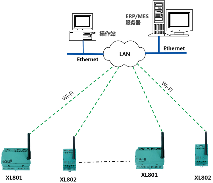XL80X選擇Wi-Fi通信方式,適用于工廠車間內(nèi)的數(shù)據(jù)采集和無線傳輸,且有局域網(wǎng)Wi-Fi覆蓋的區(qū)域。