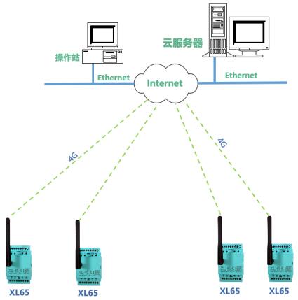 考慮到水下監測的信號問題,溫度變送器選擇防水電纜通過RS485通信方式將數據傳輸到XL65無線采集器;由于戶外偏遠,XL65無線采集器采用4G通信,不受距離限制,將數據直接上傳至云平臺。