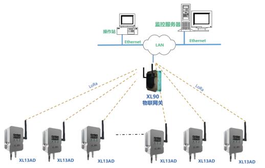 網絡層:XL13AD差壓傳感器通過LoRa無線傳輸數據至XL906物聯網關XL97網關終端,網關可選Ethernet、Wi-Fi、4G等多種方式將差壓數據傳輸至監控平臺。