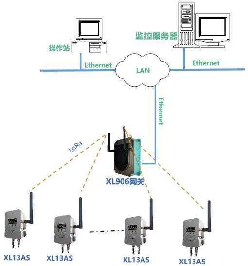 根據現場實際情況,部署XL906物聯網關XL13AS無線風管風速傳感器通過LoRa無線傳輸數據至XL906物聯網關,網關可選EthernetWi-Fi4G等多種方式將風速數據傳輸至監控平臺。