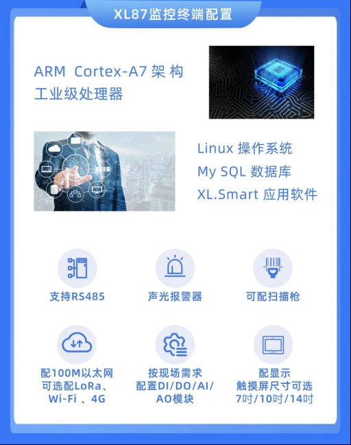XL87監(jiān)控終端,是構(gòu)建工廠數(shù)字化的節(jié)點(diǎn)裝置,旨在實(shí)現(xiàn)機(jī)器設(shè)備和生產(chǎn)管理的智能化升級(jí),朝向工業(yè)4.0邁進(jìn)。