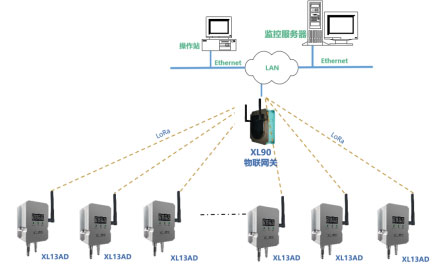 XL13AD無線壓差傳感器通過LoRa無線傳輸數(shù)據(jù)至XL906物聯(lián)網(wǎng)關(guān),網(wǎng)關(guān)可選Ethernet、Wi-Fi、4G等多種方式將壓差數(shù)據(jù)傳輸至監(jiān)控平臺。
