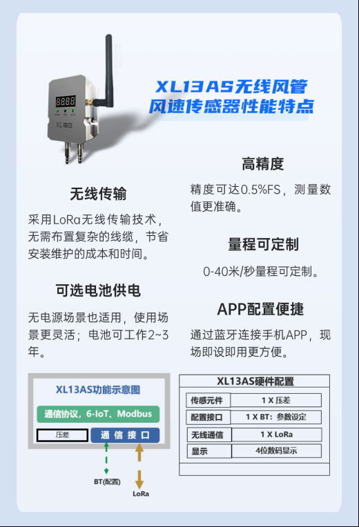 選擇 XL13AS 無線風管風速傳感器 ,對排風管風速實時監(jiān)測。帶顯示,現(xiàn)場可直觀了解當前風速。