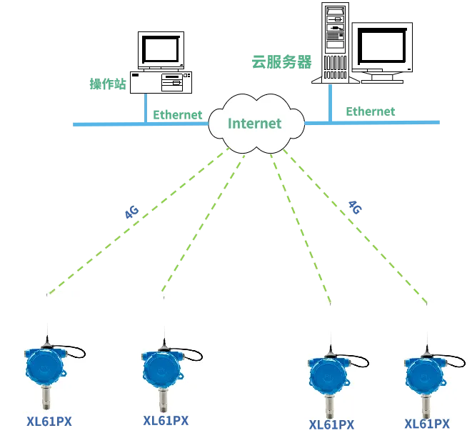 XL31PX智能壓力傳感器通過4G無線通信技術,實現遠距離、快速傳輸壓力數據至云平臺。
